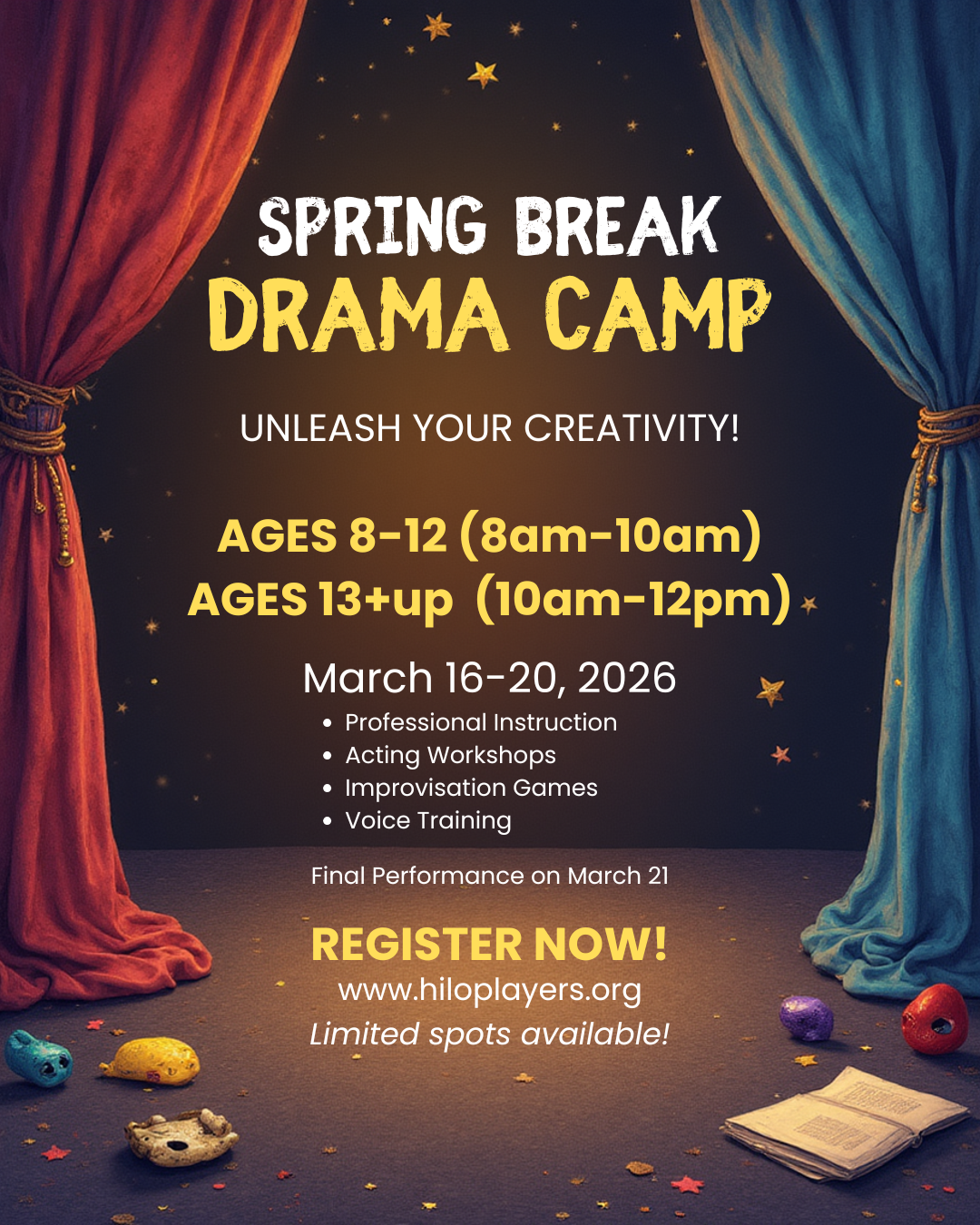 Throughout the week, participants will build confidence and creativity while learning key theatre skills including acting techniques, improvisation games, character development, and voice training.